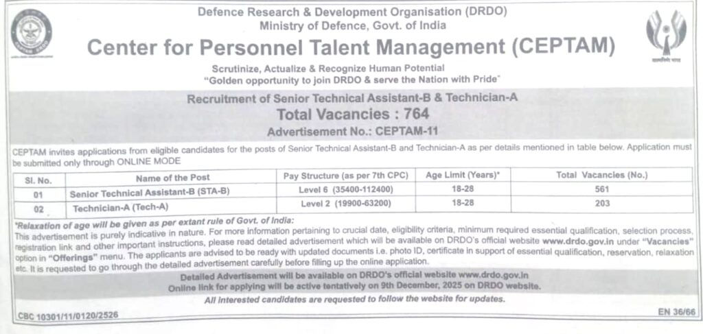 DRDO CEPTAM-11 Recruitment 2025: Vacancy Details