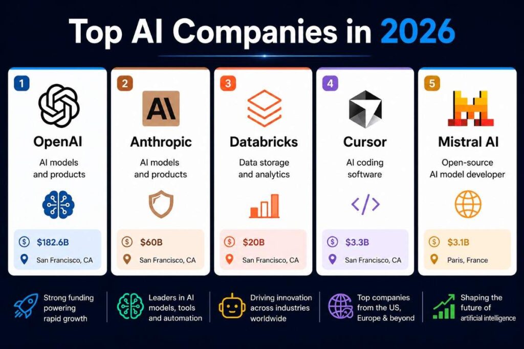 In this article, we explore the Top AI Companies in 2026, what they do, their funding strength, and why they are leading the global AI revolution